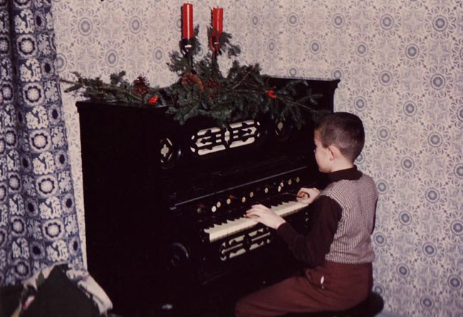 Skip at the pump organ (pumped by an Electrolux in the basement).
